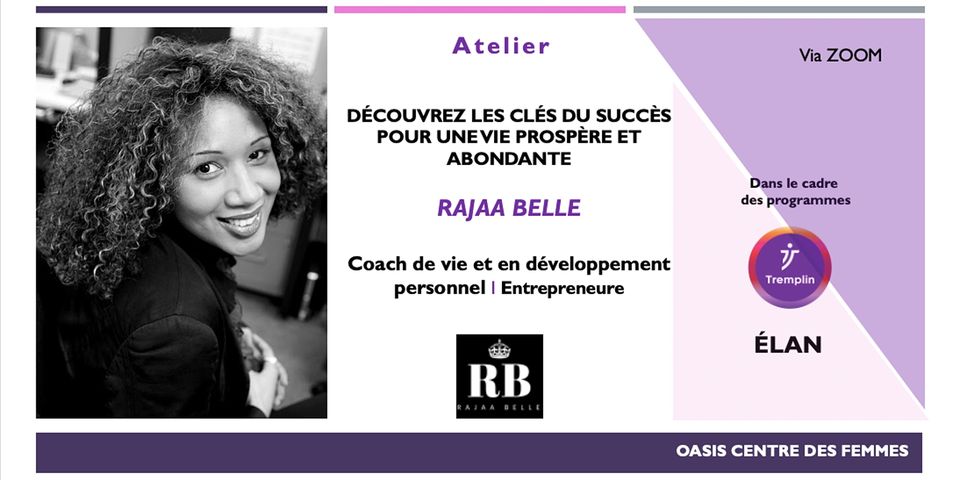 Dans cet atelier, Coach Rajaa Belle vous guidera à attirer l’abondance dans votre vie. Elle présentera la formule secrète que les 5 % des gens les plus riches utilisent pour vivre dans l’abondance pour vous aider à attirer à vous ce que vous voulez.